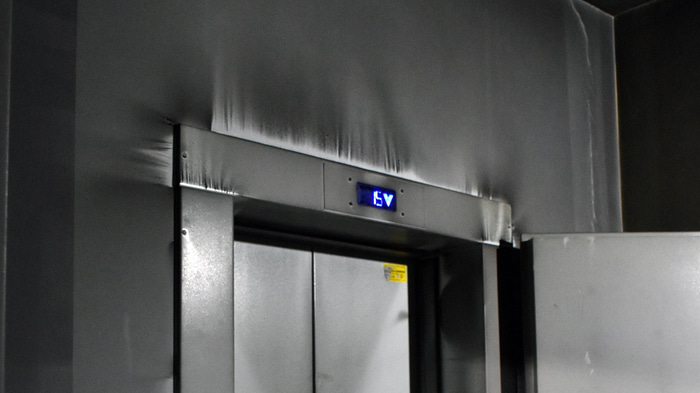 В подъезде на первом этаже ничего даже не намекает на случившийся в доме пожар. Первые этажи тоже не пострадали, но в доме до сих пор не работает один из лифтов. Тем, что работает, жильцы пользуются без опаски. Только одна пожилая женщина, опасаясь застрять, попросила парня-соседа проводить ее до этажа.