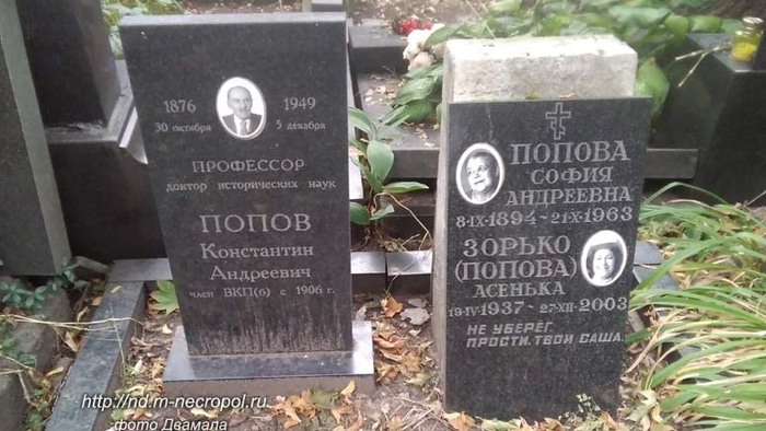 Константин Попов умер 5 декабря 1949 года. Его могила находится на Новодевичьем кладбище Москвы.