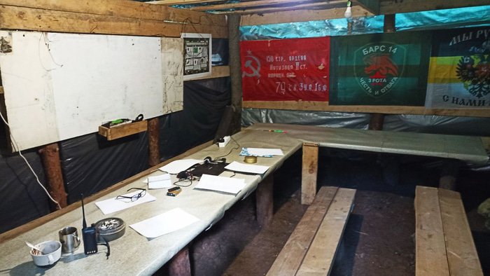 Класс для занятий построили в лесу. Флаг дивизии пробит осколками снарядов