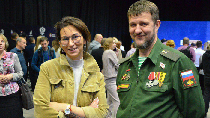 Руководитель регионального филиала фонда «Защитники Отечества» Наталья Чайка и Дмитрий Шарушинский
