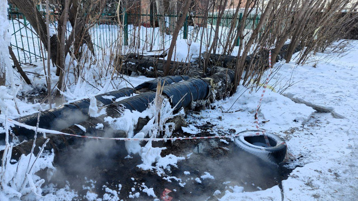 Сейчас на месте происшествия образовалась плотная наледь, деревья поблизости покрылись заиндевевшей корочкой. Поврежденные участки теплотрассы временно затянуты.