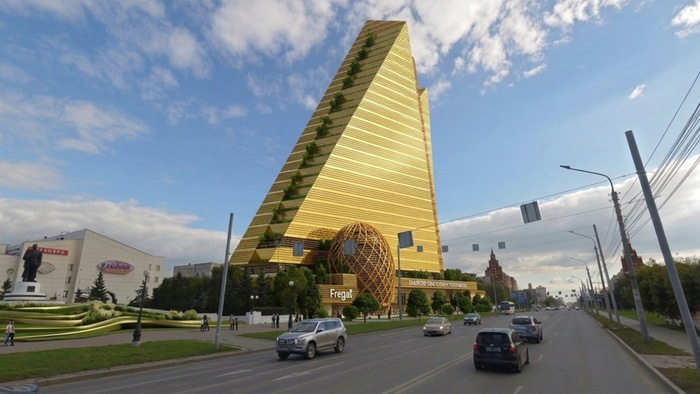 Напомним, что в 2011 году проектировщики из Казахстана предложили возвести здесь 30-этажный деловой центр в форме гигантского золотого треугольника высотой 125 метров. Инвестором выступала компания «Уиндер Интернешнл Корп.», планировавшая завершить работы к 2016 году.