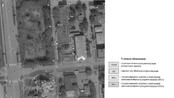 Согласно документу, вокруг памятника выделены две зоны регулирования застройки. В первой зоне (ЗРЗ-1) высота новых зданий ограничена 20 метрами до конька крыши, при этом допускаются архитектурные акценты вроде шпилей или башен до 23 метров. Во второй зоне (ЗРЗ-2) высота построек не должна превышать 5 метров, а плотность застройки ограничена 80 % участка.