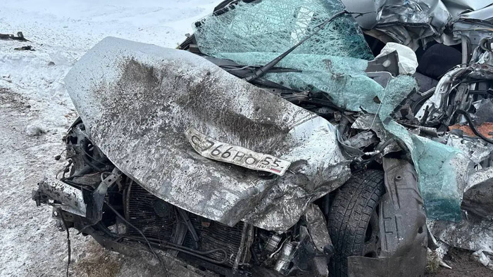 На трассе под Омском фура смяла две иномарки