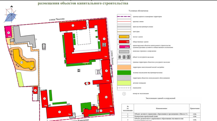 Подготовленный по заказу департамента архитектуры документ фактически легализует те градостроительные изменения, которые наметились в этой локации в последнее время. В частности, на набережной Тухачевского теперь официально значится строящееся здание гостиницы. Кроме того, бывшие корпуса столовых в проекте получили новый статус – теперь они обозначены как учебные площадки «Школы 21».