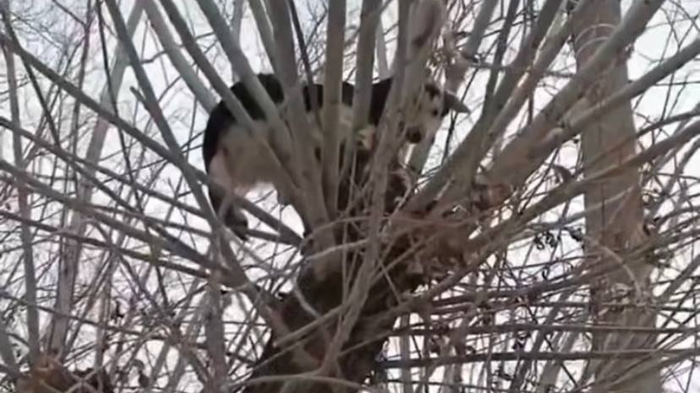 «Оказался трусишкой»: в Омске спасли застрявшую на дереве собаку