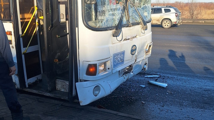Как сообщают в соцсетях очевидцы, первый автобус не успел остановиться, поэтому и произошла авария. В итоге оба автобуса пострадали.