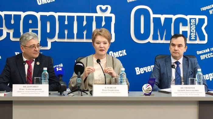 В Омске прошла пресс-конференция, посвященная основным культурным событиям года. О программе мероприятий рассказали заместитель мэра города Инна Елецкая, директор департамента культуры администрации Омска Олег Федоренко и директор Камерного драматического театра имени В. С. Решетникова Анджей Неупокоев.