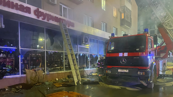 Вчера, 31 марта, в 23:38 в Омске на улице Пушкина загорелось помещение магазина тканей, расположенного в пятиэтажном жилом доме.