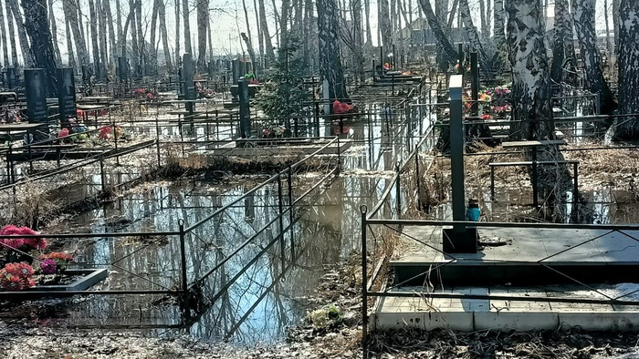 В воскресенье, 29 марта, жители деревни Приветная Омского района пожаловались в социальных сетях на подтопление местного кладбища. По их словам, значительная часть захоронений оказалась в воде.