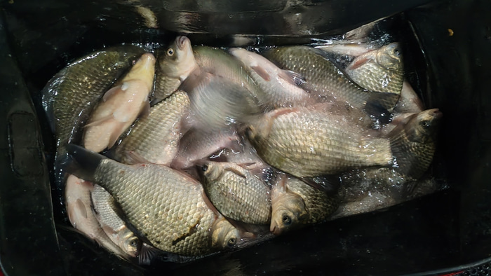 – Рыбы очень много, и сазан стоит хороших размеров, встали на «краник», как начался камыш, но все равно, пришлось вырезать косой – очень много зацепов, карась граммов по 800, хороший, – рассказал один из рыболовов.