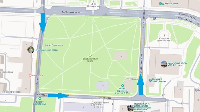 Сегодня, 10 апреля, омский департамент транспорта объявил о введении одностороннего режима на трех улицах, окружающих Выставочный сквер. Схема движения изменится на улицах Таубе, Победы и Достоевского.