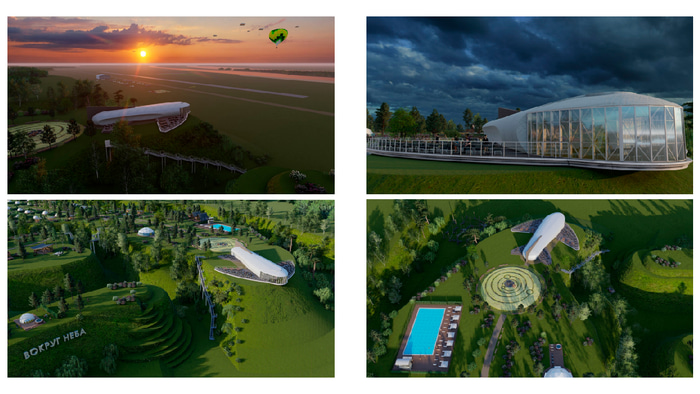 «Зона тихого отдыха» – это модульные дома в формате «глэмпинг» для проживания. «Зона акватории» – площадки для отдыха на воде. «Зона активного отдыха» – игровые площадки, скейт-парк, кроссфит, площадка приземления парашютистов, трассы для квадроциклов, багги, снегоходов, тюбинг-трассы, скалодром. «Досугово-развлекательная зона» – тематическая детская площадка с игровой комнатой, событийный центр. Пешеходные зоны и смотровые площадки, включая подвесной мост над оврагом. И конечно, «зона фудкорта».