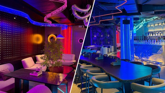 Концепция интерьера нового бара выполнена в хай-тек стилистике и Японии 2300 года. Дизайнерское решение пространства базируется на использовании неона, металла и натурального камня в сочетании с ручной росписью стен. Среди технологических и декоративных особенностей объекта выделяются кинетический стол, создающий узоры на песке по принципу японского сада, и потолочная вытяжка, стилизованная под фигуру дракона.