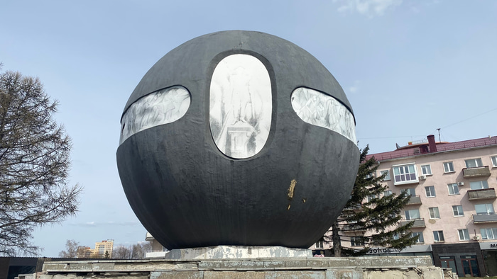 В 1997 году денег у города не было, и вместо благородного металла омичи получили «макет в натуральную величину» из стеклопластика и фанеры. Литые барельефы заменили на художественную роспись по поверхности, и с тех пор, вот уже почти 30 лет, центр Омска украшает дешевая «времянка», посреди которой зияет огромная дыра, изображения на шаре выжгло солнце, а его поверхность местами сильно повреждена.