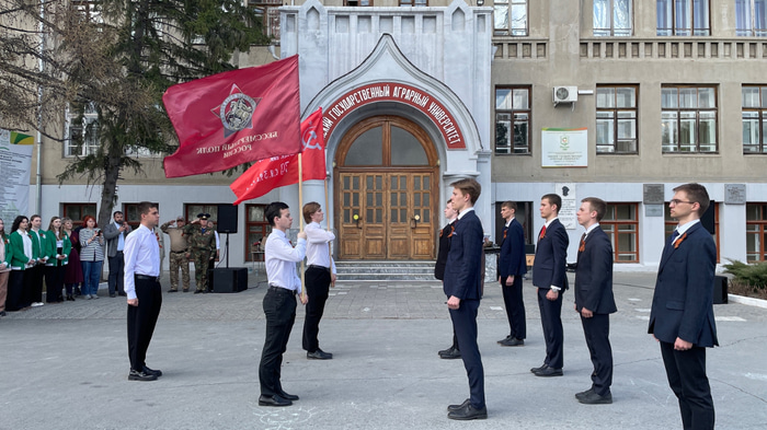 22 апреля на Институтской площади Омского ГАУ состоялась патриотическая акция «Эстафета Памяти». Университет принял точную копию Знамени Победы 1945 года и флаг Бессмертного полка от Омского государственного педагогического университета.