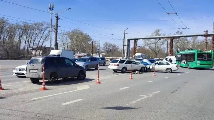 Водитель автомобиля «Тойота-Спринтер», 1961 г.р., не справился с управлением и наехал на группу людей, менявших колесо на «мазде» на «островке безопасности». Далее машина продолжила неуправляемое движение и ударила автомобиль «Тойота-Камри» под управлением мужчины 1970 г.р. От удара его отбросило на стоящее транспортное средство «Логан».