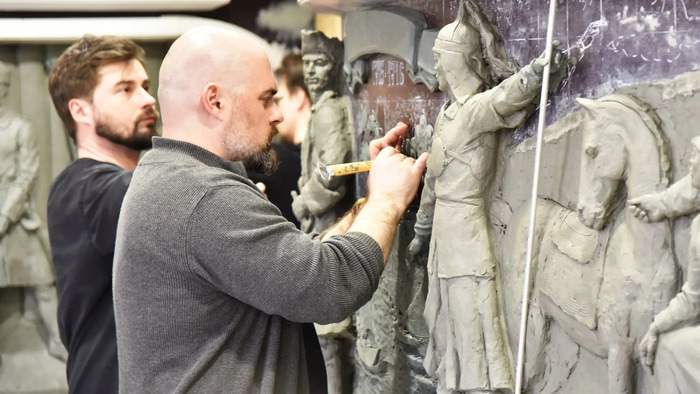 – Настоящее чудо происходит сегодня в мастерской омского скульптора Михаила Минина. Вместе с командой единомышленников художник работает над созданием прототипов будущих барельефов, которые украсят новый шар «Держава», – написал Шелест в своем макс-канале.